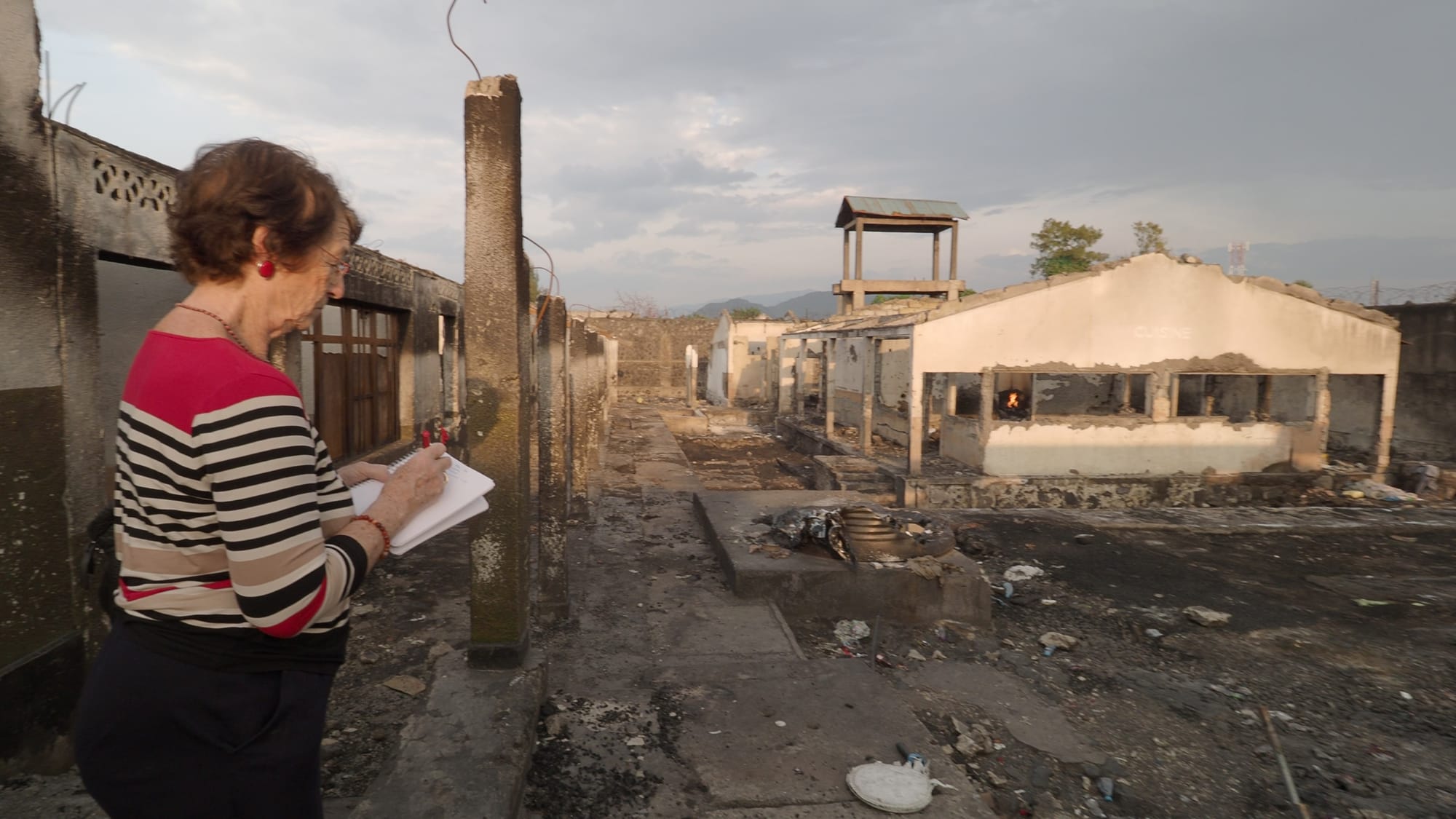 Nous avons visité plusieurs quartiers populaires et la prison de Goma où tous les prisonniers ont pu s'échapper avant que le M23 n'attaque la ville. Plus de 160 prisonnières et enfants ont été brûlés vifs dans cette prison après l'explosion de plusieurs chaudières à gaz pendant le chaos en cours. La moitié de ces corps étaient encore conservés dans des sacs mortuaires devant l'entrée de la prison. J'ai filmé cela et j'ai traversé la prison, dans la cuisine il y avait encore un feu qui brûlait. Les murs des cellules étaient noir de suie à cause de l'incendie qui avait fait rage ici. Colette a pris des notes de ce qu'elle voyait. Il était déjà tard, et elle voulait retourner à la maison d'hôtes. Le lendemain, une ONGbelge avait accepté de nous emmener en voyage hors de la ville pour visiter des hôpitaux pillés. Avant de retourner à la maison d'hôtes, notre chauffeur m'a déposé à l'Hôtel Linda où j'ai rencontré quelques journalistes étrangers que je connaissais du passé. Pour la plupart d'entre eux, c'était leur première expérience au Congo. Dans le temps, les grandes agences de presse gardaient des gens comme moi dans cette région pour suivre les événements et anticiper les nouvelles, mais de nos jours l'Afrique a été largement poussée hors des grands circuits d'information. D'autres guerres comme celles de Gaza ou d'Ukraine volent maintenant la vedette. Pendant ce temps, des centaines de personnes mouraient dans les guerres en Afrique, mais personne ne semblait s'en soucier. La chute de Goma briserait cette habitude pendant quelques semaines, mais après cela ce conflit serait à nouveau oublié.
